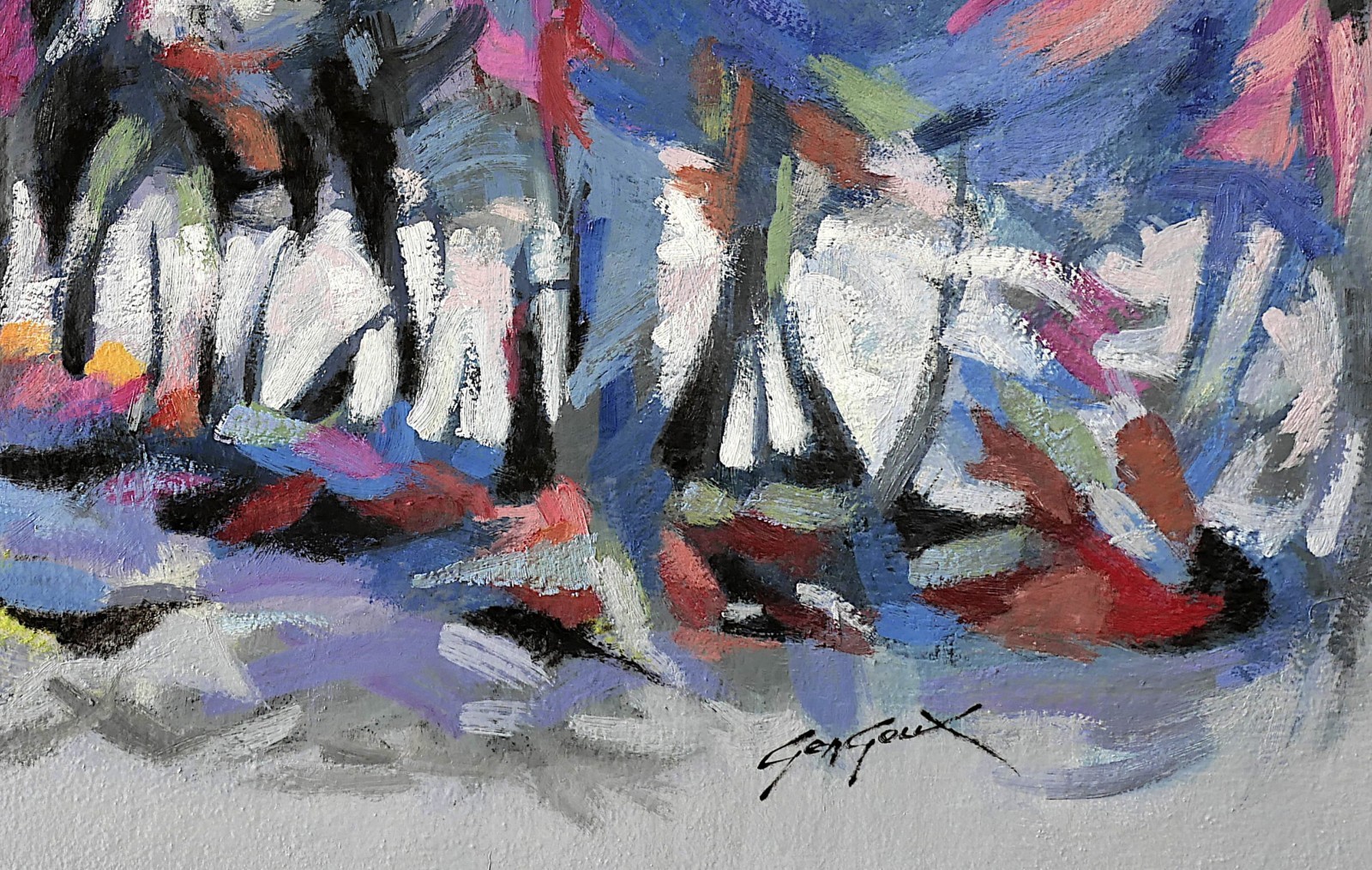 Pour cette transition entre deux saisons, j'ai voulu davantage de fluidité par une touche généreuse et vibrante grâce à l'emploi de la marque Old Holland, pigments purs broyés à l'huile de lin vierge, première pression à froid et clarifiée au soleil.