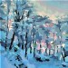Avec ce motif tout simple vu de ma fenêtre, j'ai pris un immense plaisir à peindre au couteau. Le paysage d'hiver, absent de couleurs vives, oblige à explorer les gris colorés, à développer l'étalement des valeurs, d'où une harmonie finement nuancée. Plus l'artiste nuance son oeuvre, même dans une démarche résolument plasticienne, plus il prend des risques. Voyez comme la dominante froide se renforce par quelques touches chaudes !