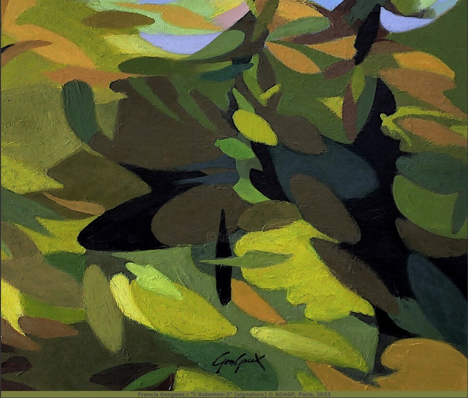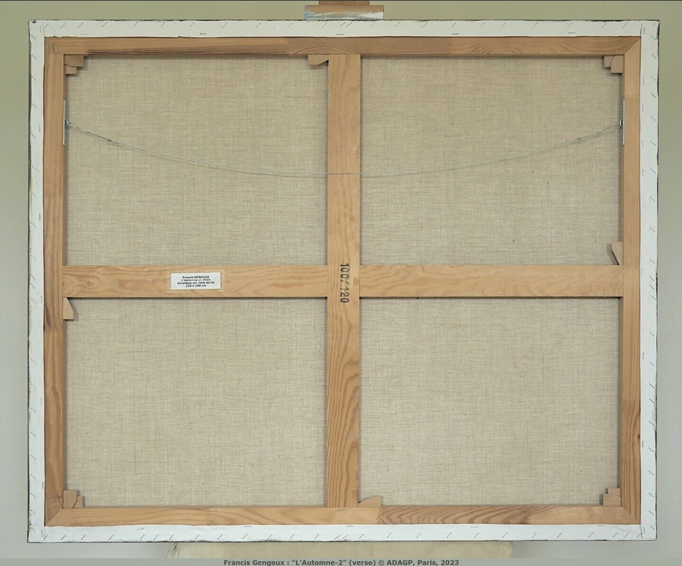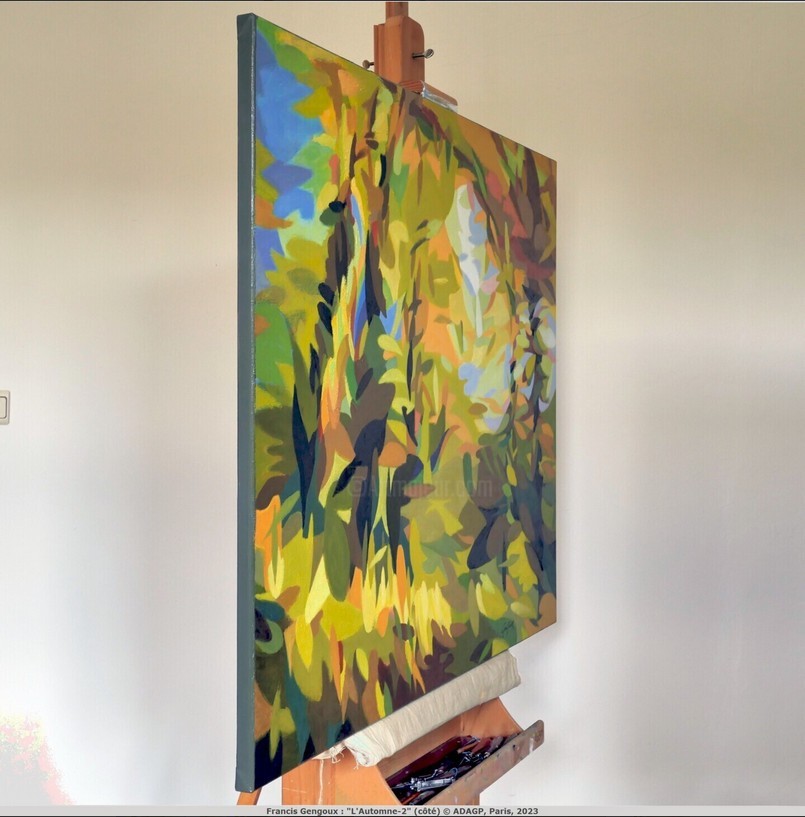 Francis Gengoux : L'automne-2, 2023. Acrylique sur toile de lin, 120 x 100 cm. Oeuvre en parfait état prête à accrocher. Encadrement sur devis uniquement. Pièce unique. Certificat d'authenticité signé et délivré par l'artiste. © ADAGP, Paris, 2023