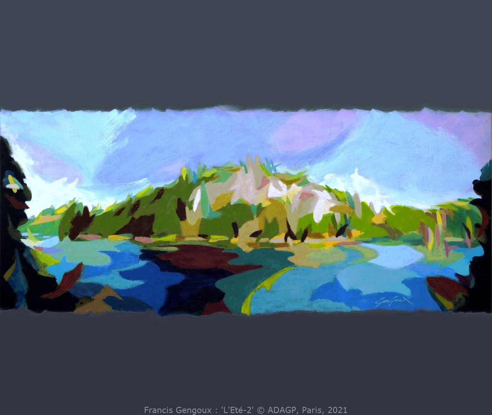 Francis Gengoux : L'Eté-2, 2021. Acrylique sur toile de lin, 120 x 100 cm. Prix : 3 700 €. Cote Akoun. Pièce unique. Oeuvre en parfait état prête à accrocher. Encadrement sur devis, uniquement. © ADAGP, Paris, 2021.