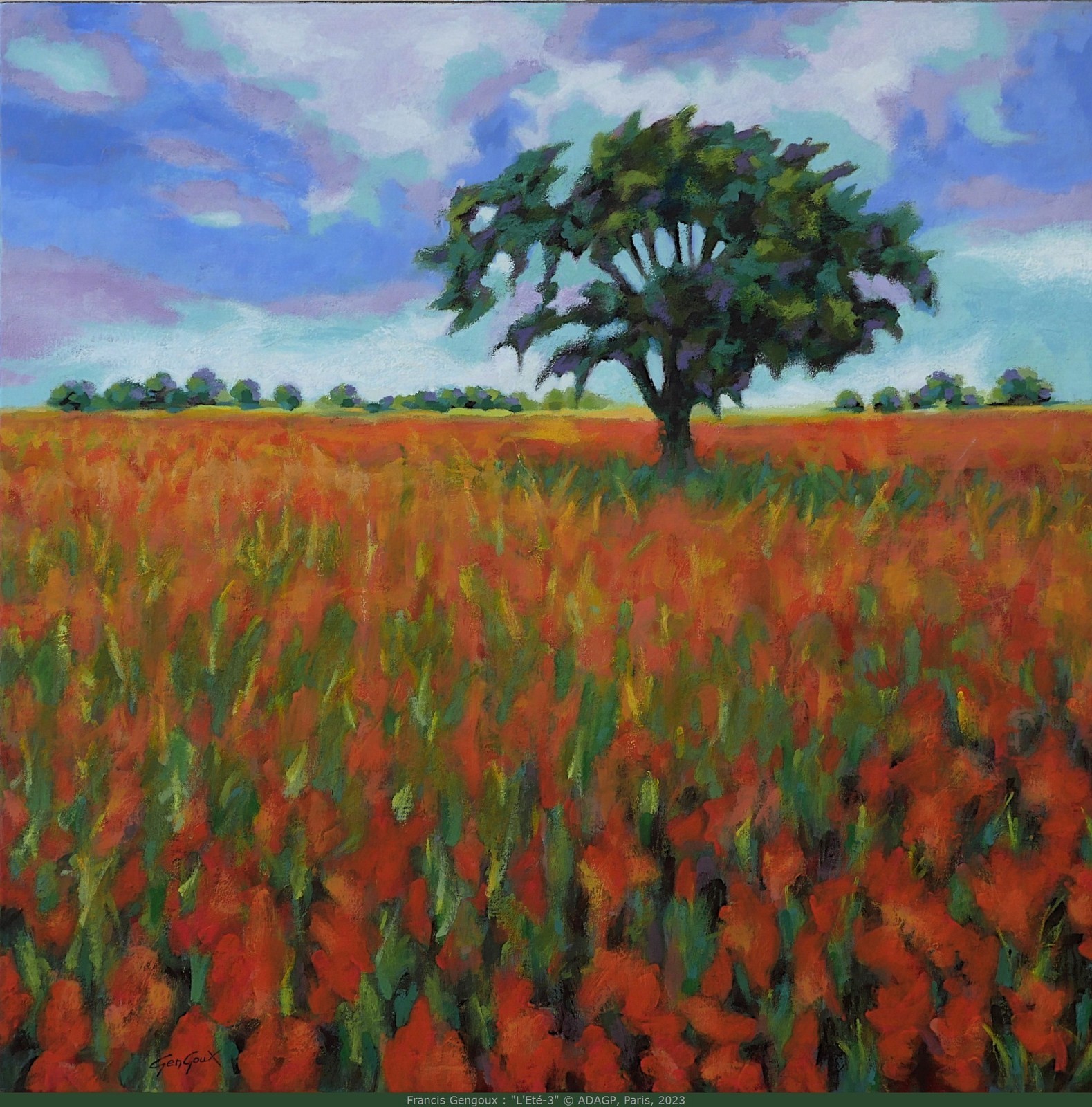 Francis Gengoux : L'été-3, 2023, acrylique sur toile de lin, 80 x 80 cm. (Atelier.) Prix : 1 950,00 EUR. Cote Akoun. Oeuvre en parfait état prête à accrocher. Encadrement au choix (caisse américaine). Pièce unique. Certificat d'authenticité signé et délivré par l'artiste. © ADAGP, Paris, 2023.