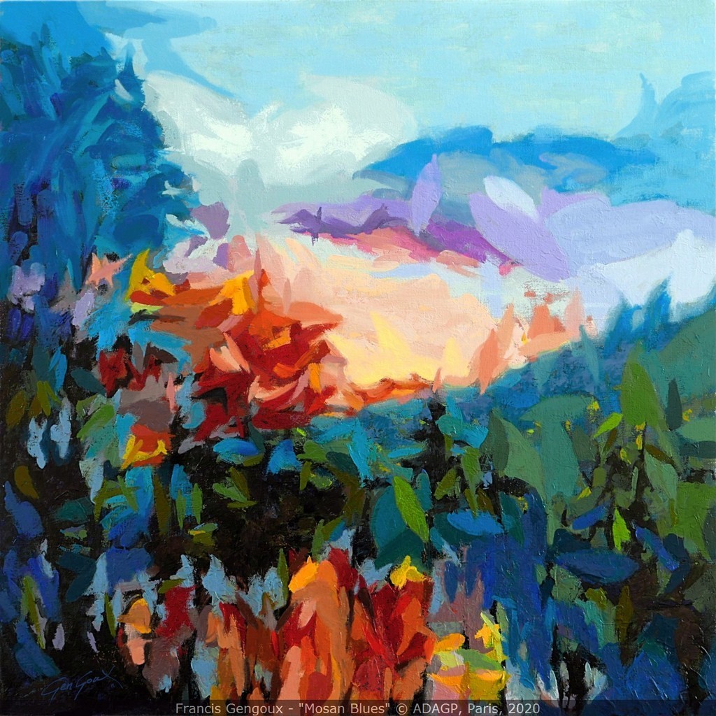 Francis Gengoux : Mosan Blues, 2020, huile sur toile de lin, 80 x 80 cm. (Atelier.) Prix : 1 950,00 EUR. Cote Akoun. Oeuvre en parfait état prête à accrocher. Encadrement au choix (caisse américaine). Pièce unique. Certificat d'authenticité signé et délivré par l'artiste. © ADAGP, Paris, 2020.